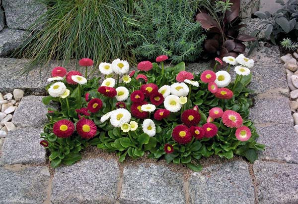 Au fait! Les marguerites sont très jolies avec tulipes, jonquilles et d'autres plantes bulbeuses.