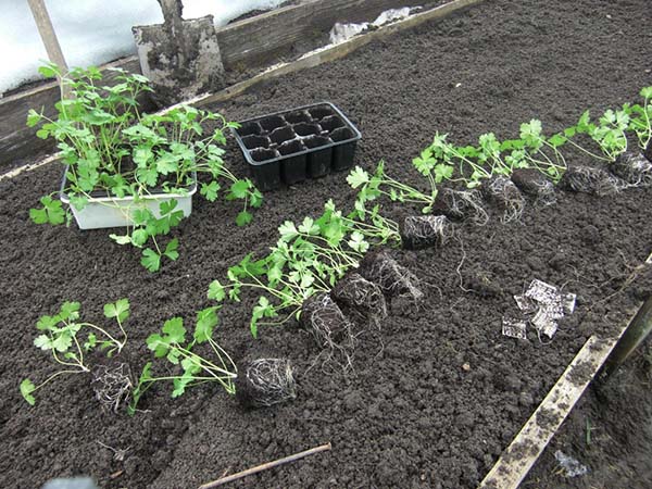 Il vaut la peine de planter des plants de persil sur un lit de jardin en pleine terre à l'âge de 1,5 mois, c'est-à-dire que si vous le plantez à la mi-mars, la période d'atterrissage est appropriée début mai.