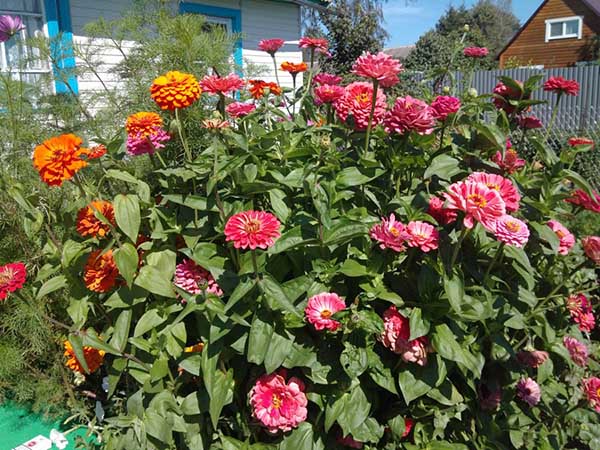 Intéressant! Étonnamment, les zinnias sont assez résistants au vent. Les buissons sont hauts mais puissants.