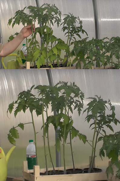 - Plantez des plants de tomates, en approfondissant les plants en feuilles de cotylédons ou réelles (dans ce cas, les cotylédons doivent être coupés).