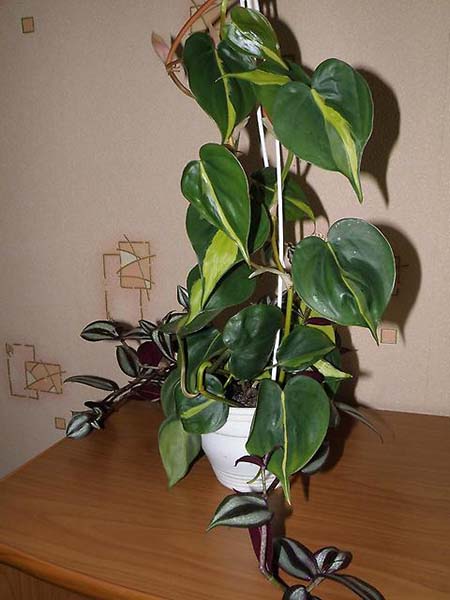 Liane spectaculaire aux feuilles-coeurs ciselés. Pour améliorer la décoration, il est nécessaire de fournir un soutien. N'aime pas le soleil brillant et dira merci pour l'ombre légère. L'arrosage doit être abondant, il aime beaucoup l'humidité. Peut être cultivé comme culture hydroponique.